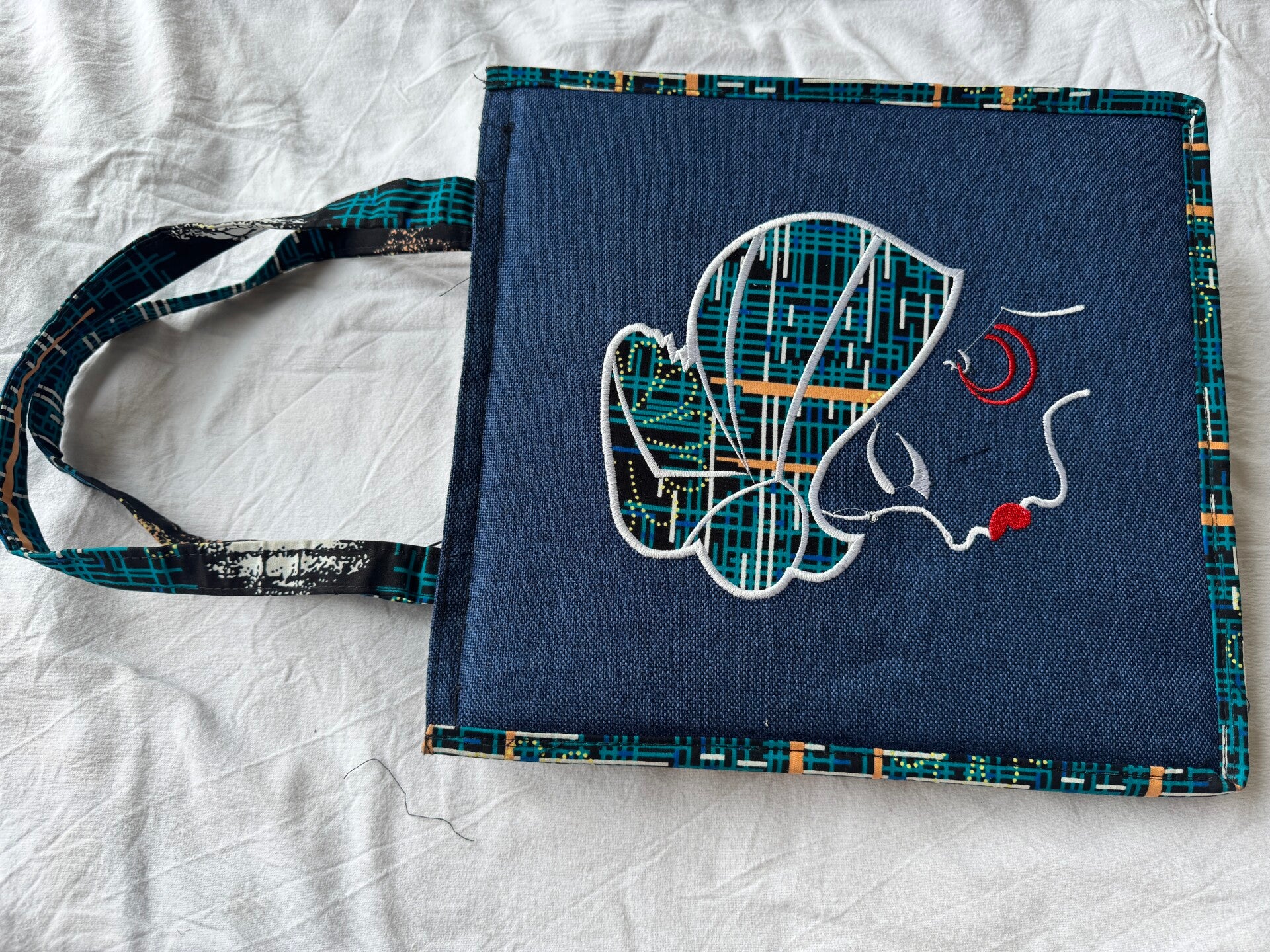 Shoulder bag with vibrant african pattern print.
