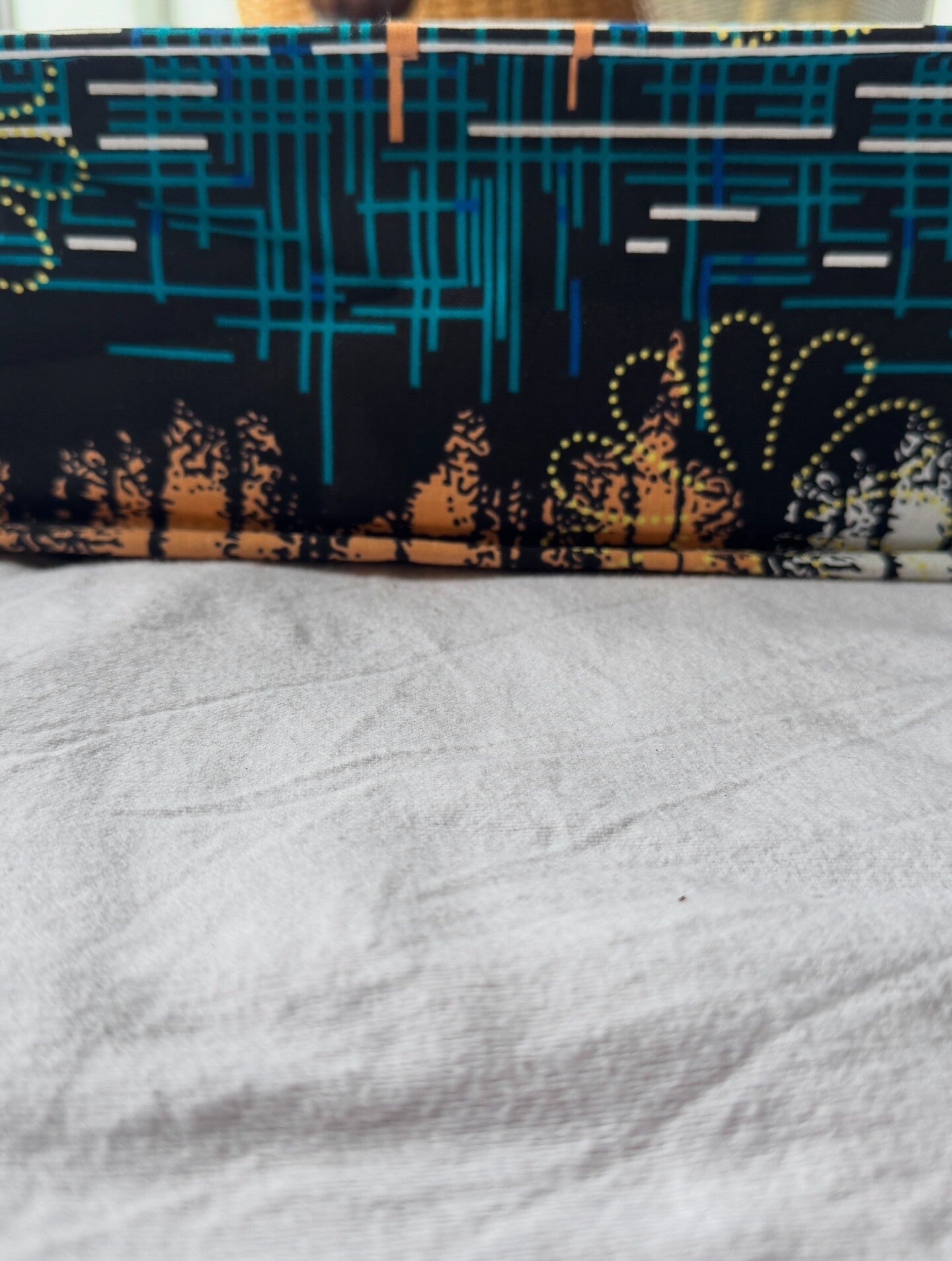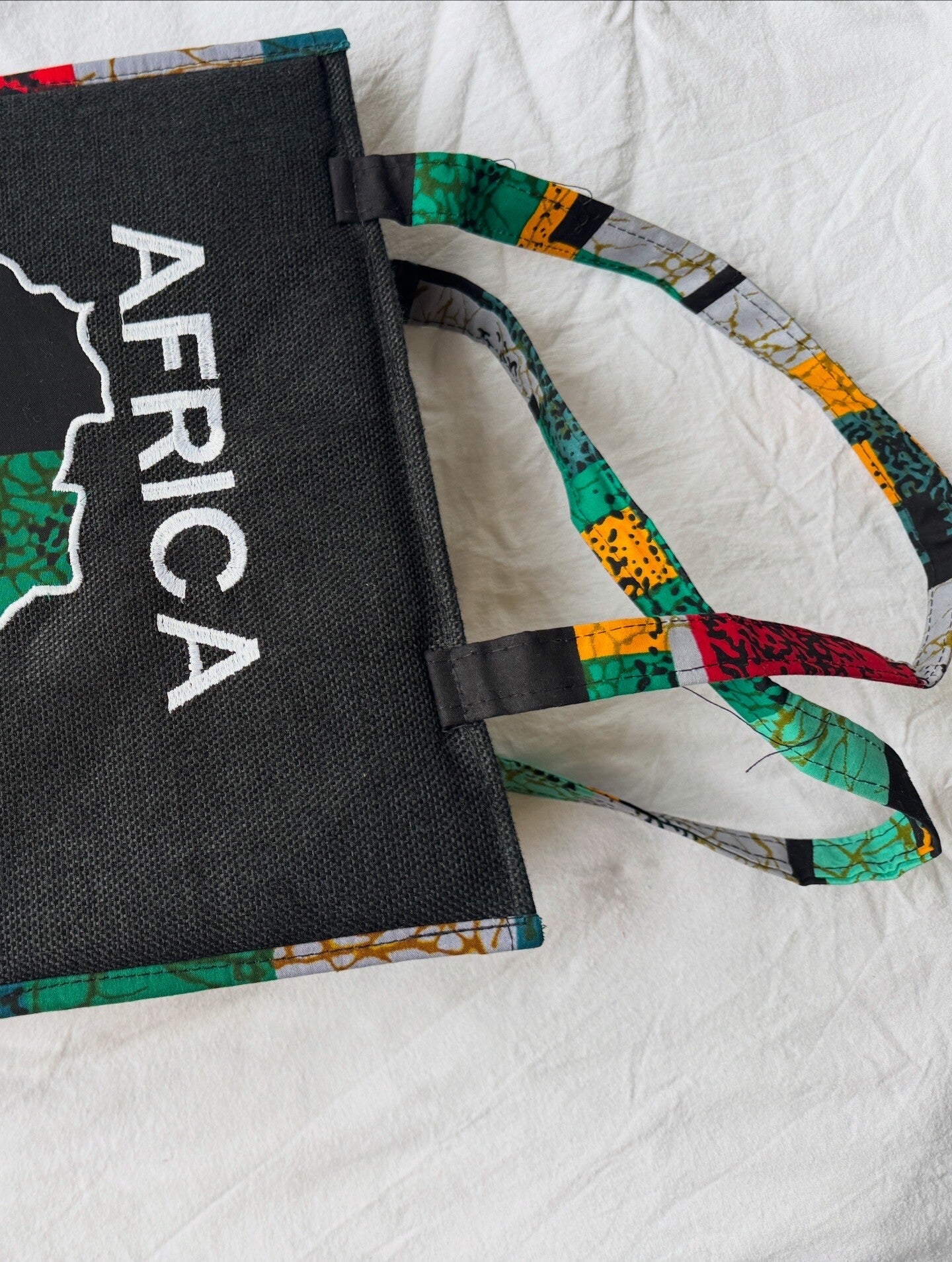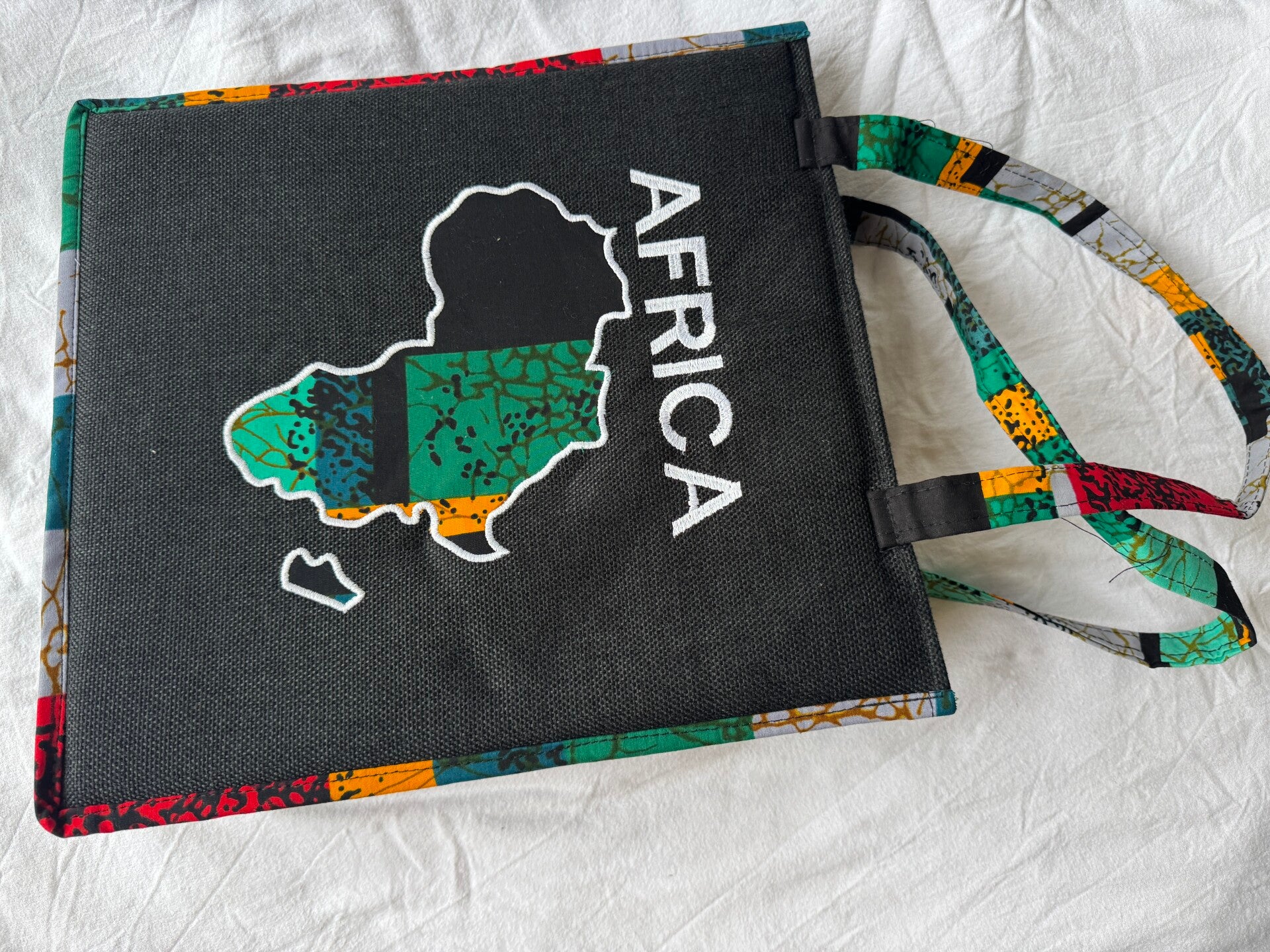 Shoulder bag with vibrant african pattern print.