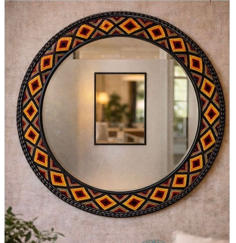Also available on pre-order in your favourite color and designs, beaded mirror and beaded wall coasters that not only brings colors in your space but also views.