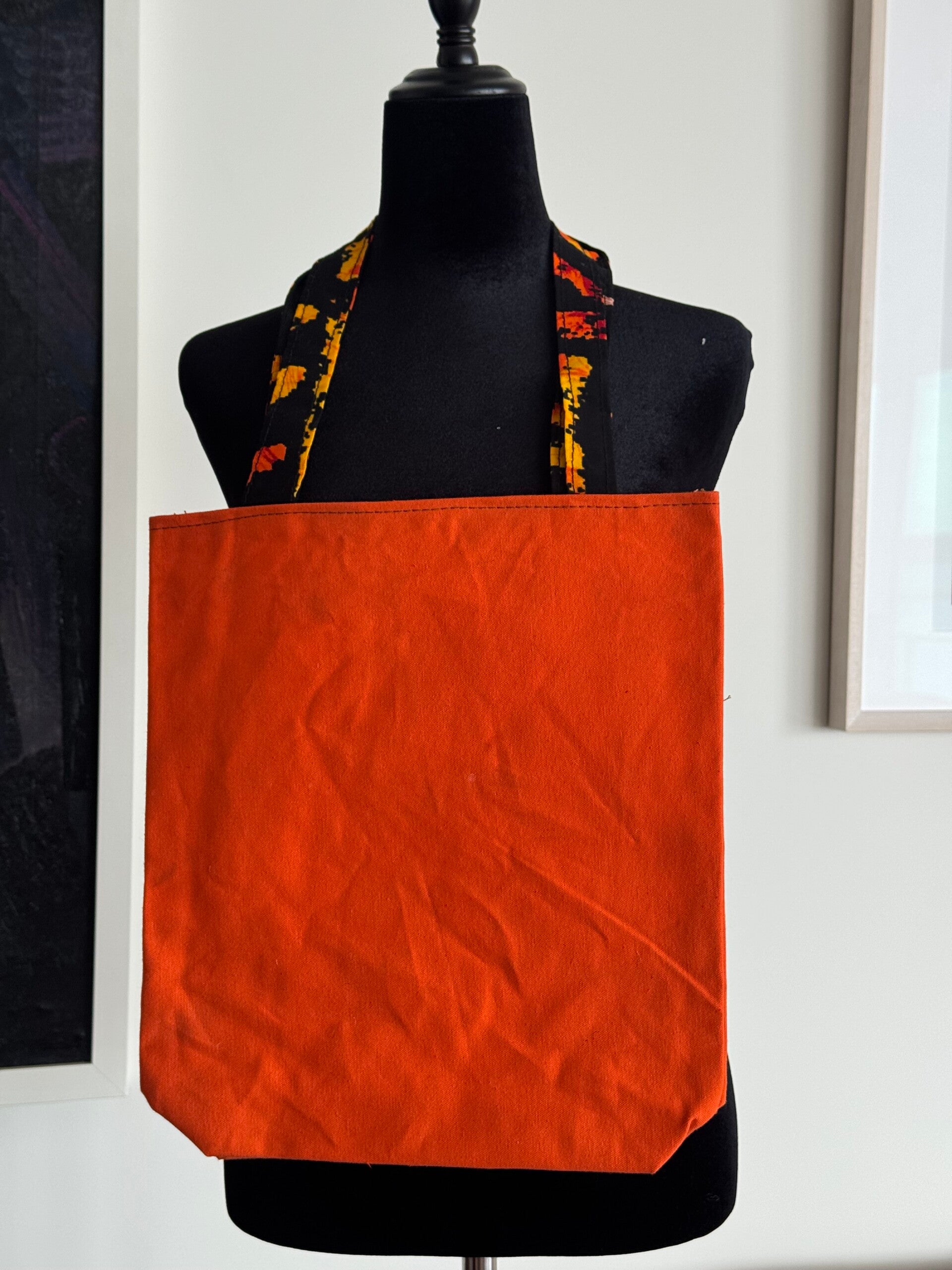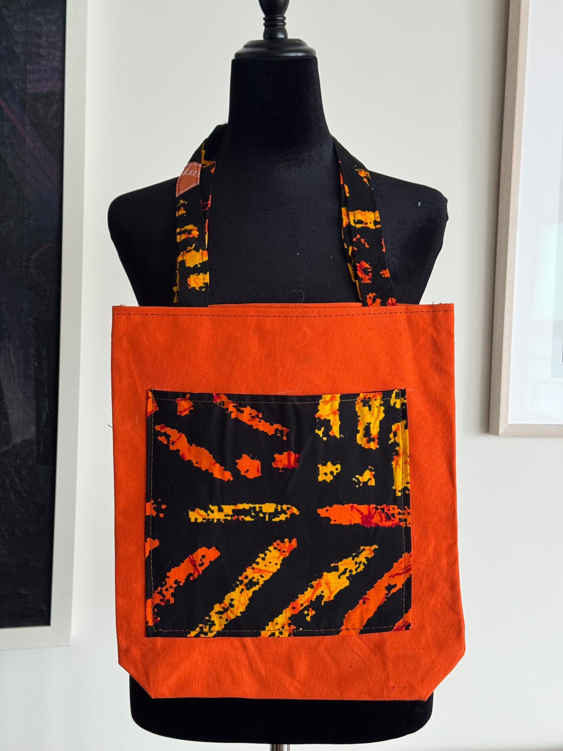 Ornage Canva with Ankara Pocket Totebag